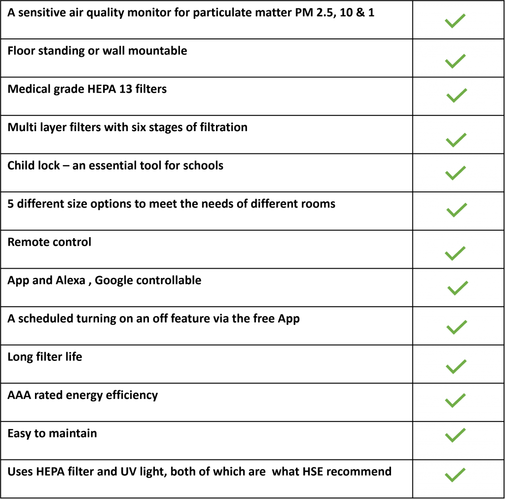 Many other operators in this sector adopt a ‘one machine size fits all’ approach. In other words, they have only one size and type of machine to offer you. This can mean you will have to pay a higher price for a machine that has too high a capacity for a smaller room. Equally, you may be required to buy 2 or more machines to deliver the air changes needed in a larger room.
